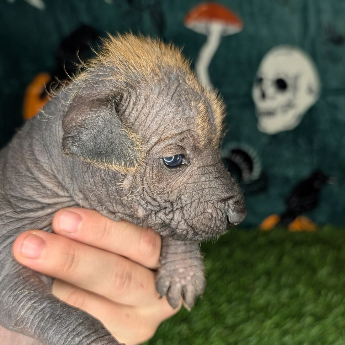 Second born, bronze hairless boy.